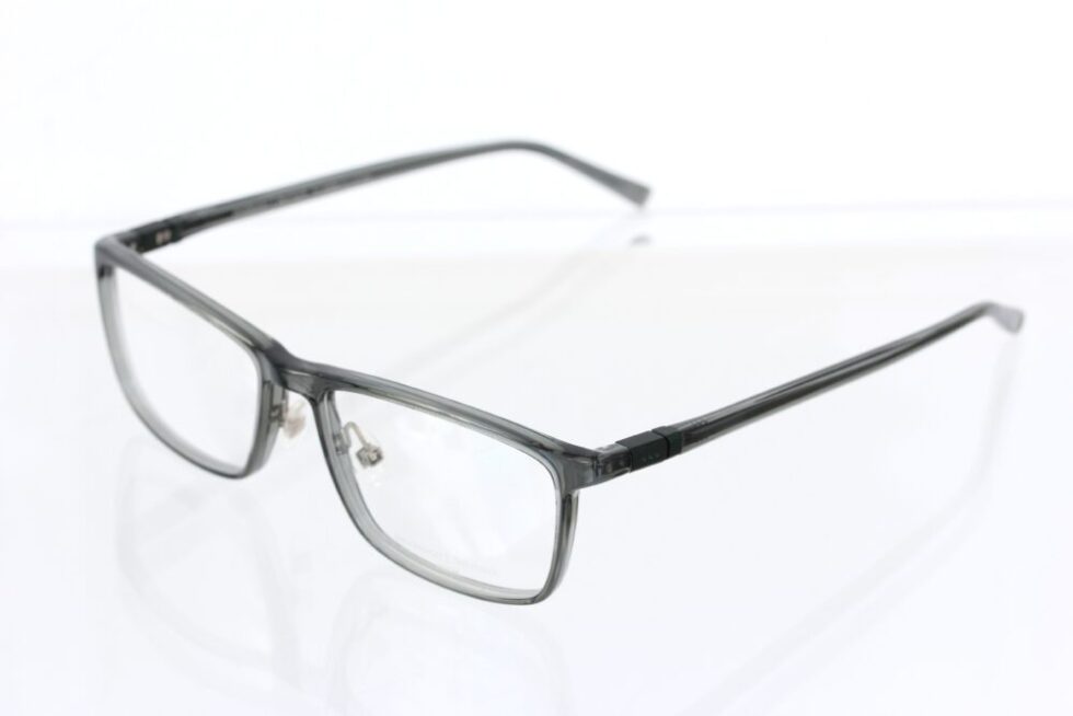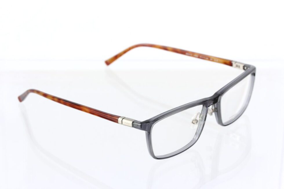 フロント部分に透明感のあるグレー系の生地を使用したスクエアフレーム。