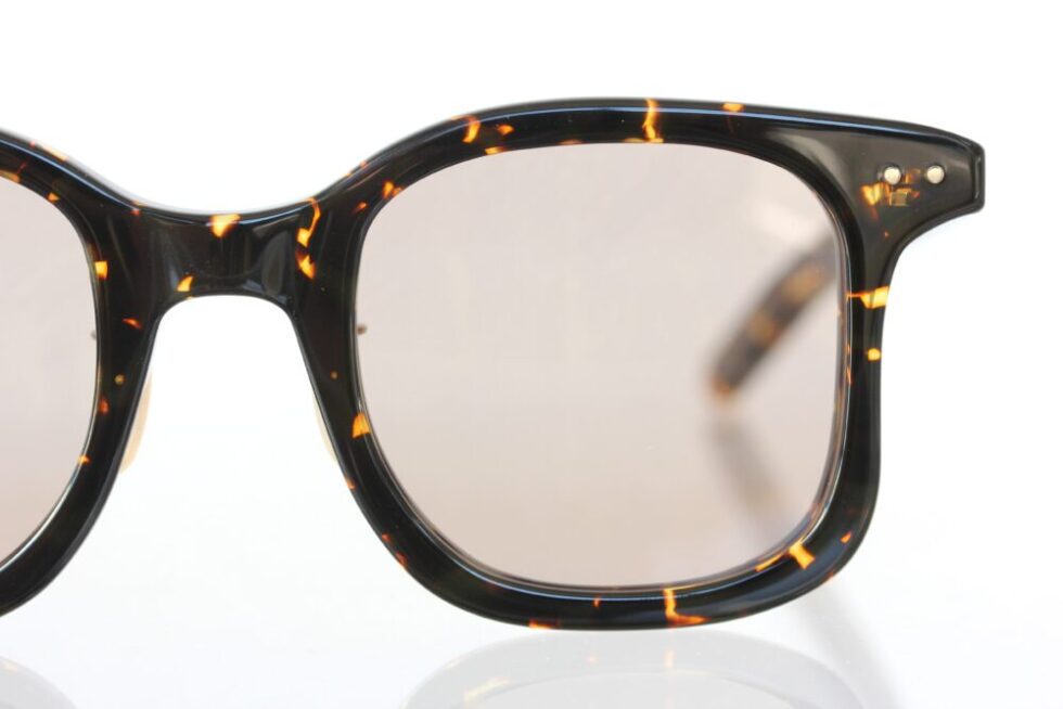 レンズは目が透けて見える程度の濃さの為、相手に表情が伝わる、威圧感の少ないナチュラルなサングラスに。