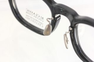 角をわずかに落としたパリジャン型の黒縁フレームは、セルロイドならではの独特の艶と深みが魅力です。