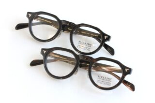 王道黒縁フレームも入荷。セルロイド素材ならではの奥から滲むような上質な黒が美しい。