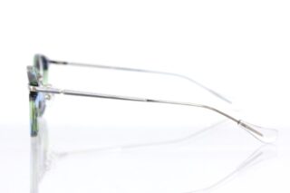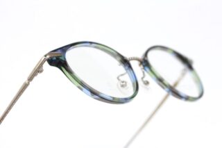 透明感のあるブルーとグリーンのマーブル模様が美しく、ラウンドシェイプをベースに、ほんの少し横に広がったボストン寄りの柔らかなラインが特徴です。