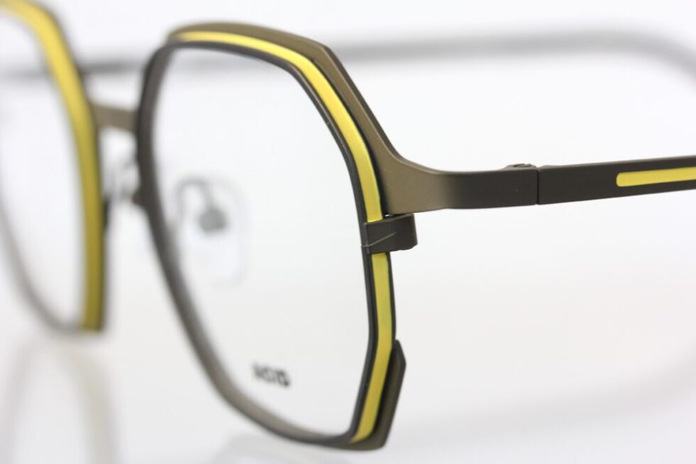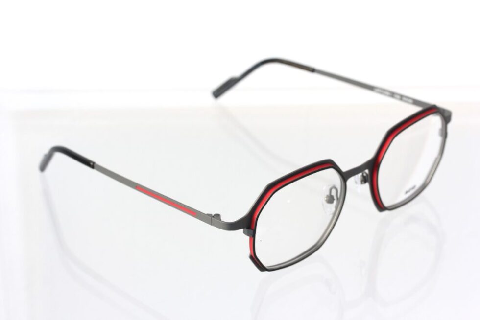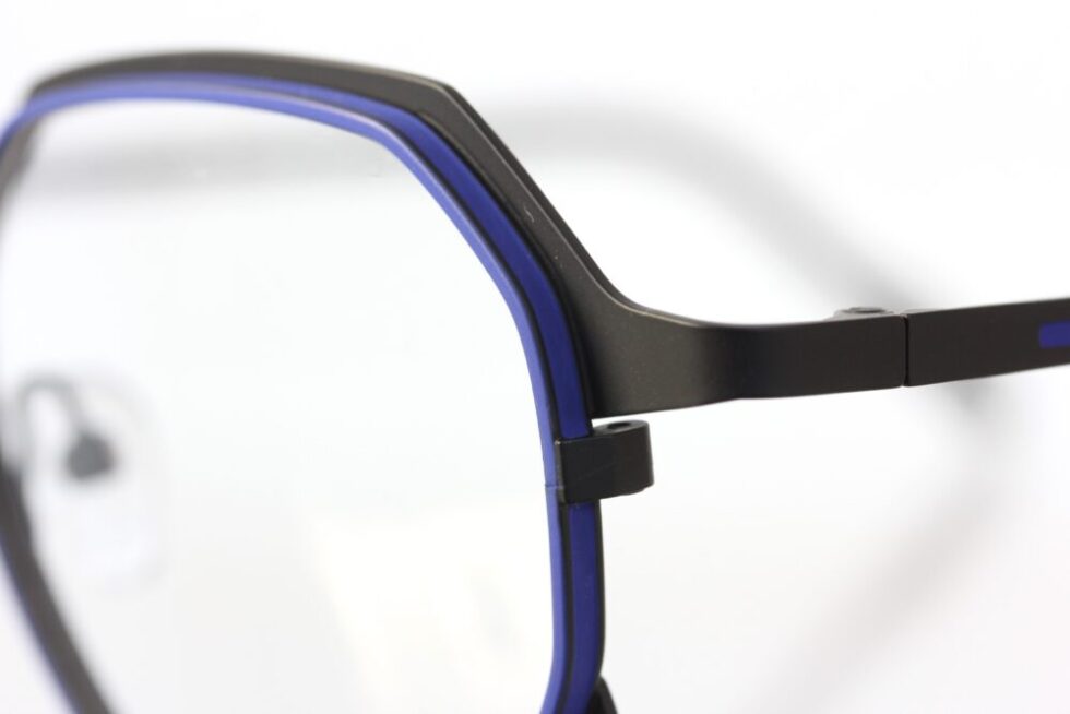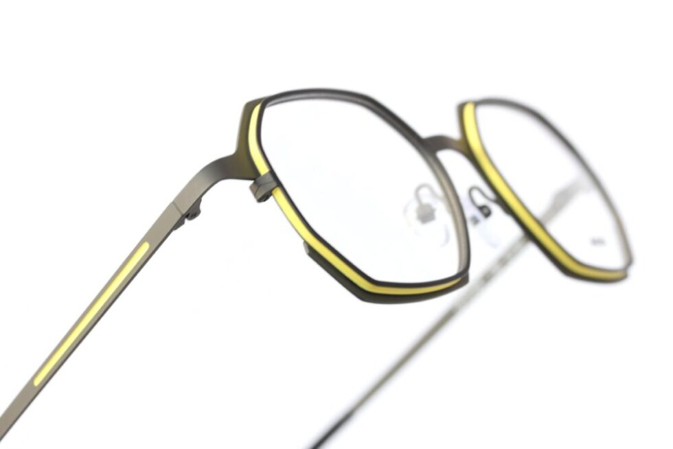 テンプルにも同様のラインが走り、横顔までデザイン性を感じさせる仕上がりに。