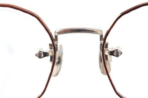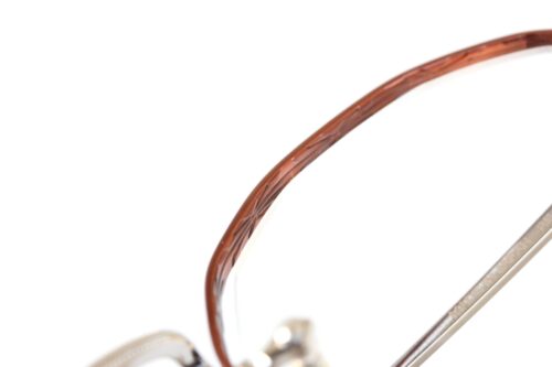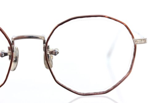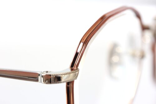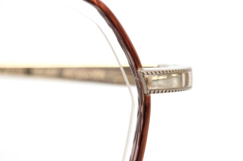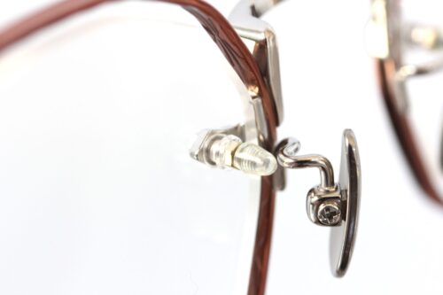 またレンズ端、ブリッジ側に穴を開けネジで留める”ワンポイント式フレーム”という構造が特徴的で、リムとレンズの間に隙間を確保することでレンズが浮いたような造形に。