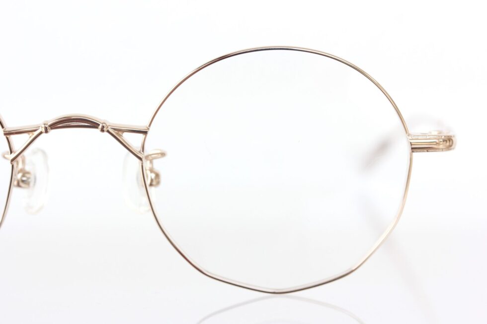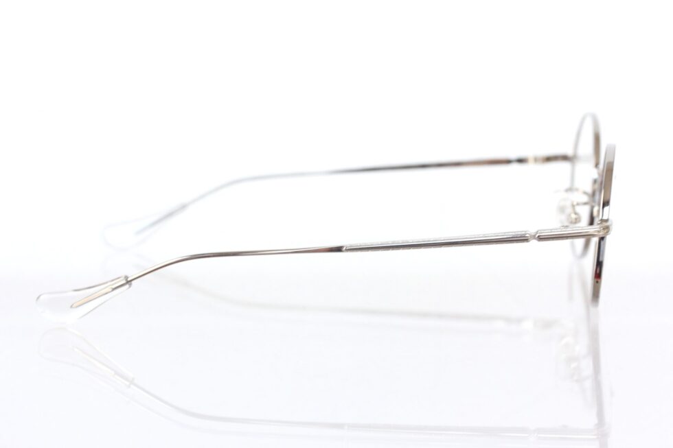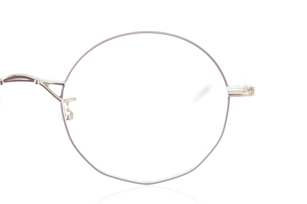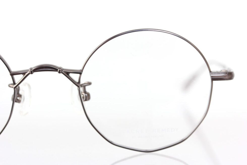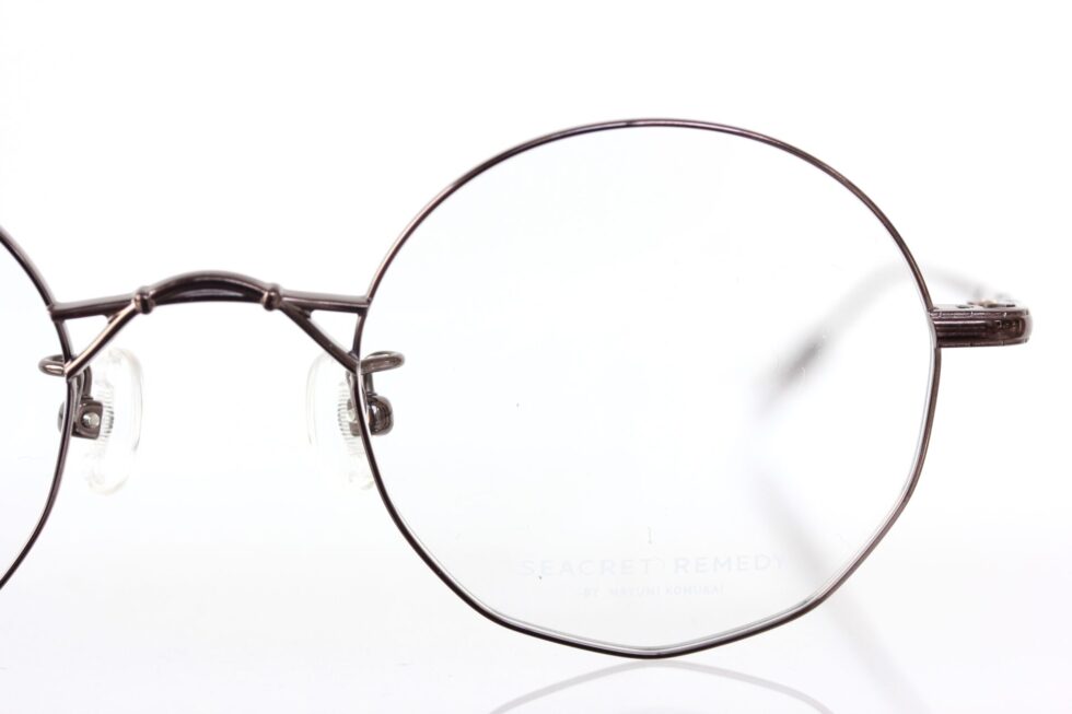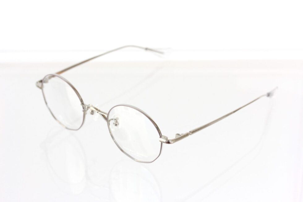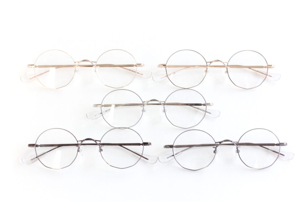 デザイナーの小向さんから直接お話を伺いましたが「離れて見るとシンプルなラウンド型に見えるけど、パーソナルスペースに踏み込んだ距離で初めて気づく、レンズ下部のさりげない多角形ラインがポイント」とのこと。
