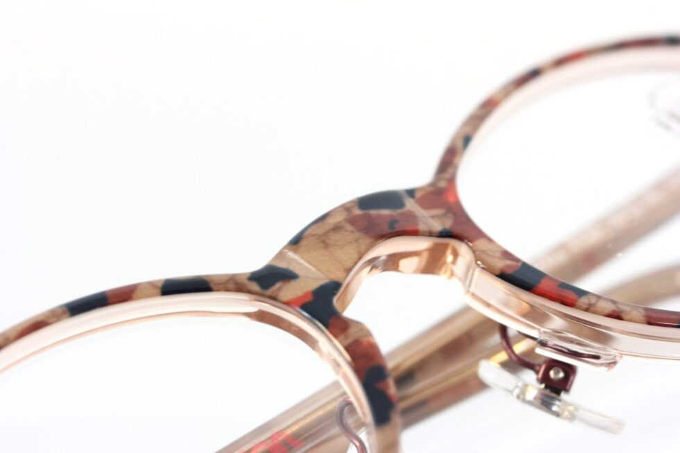 単色フレームにはない奥行きがありシンプルな装いにも程よいアクセントを加えてくれます。