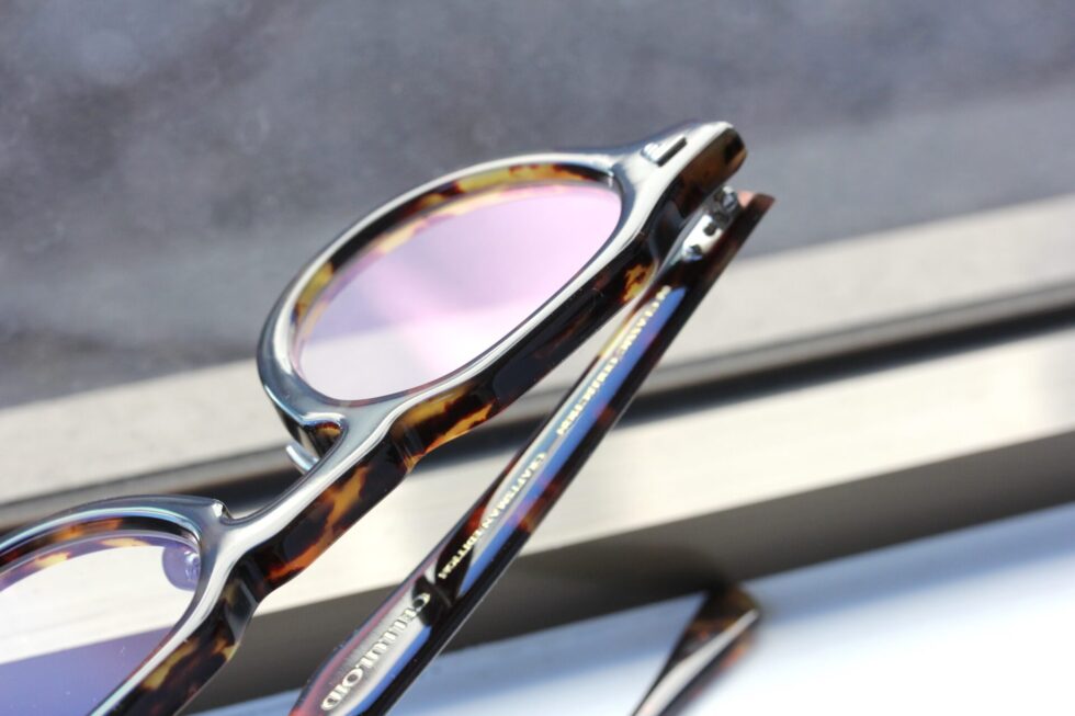 湾曲していない分、掛けた時にキラッと個性的な強い反射を生み出し、よりファッション性の高い表情になります。
