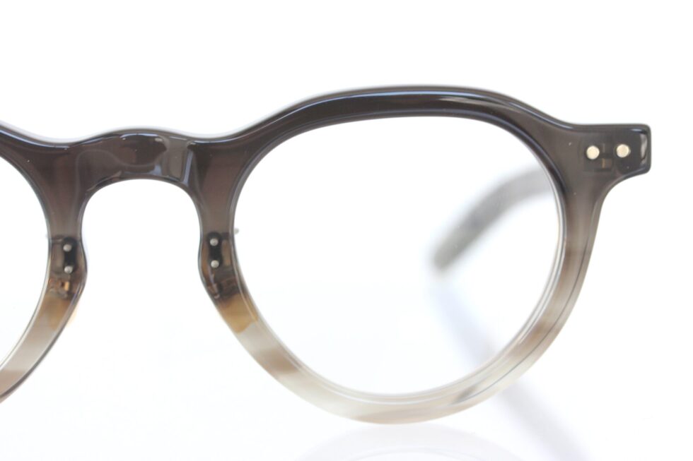 いわゆるボストン型ですが、やや縦幅を抑えた設計で、掛けたときに野暮ったくならずすっきりとしたバランスに仕上がっています。