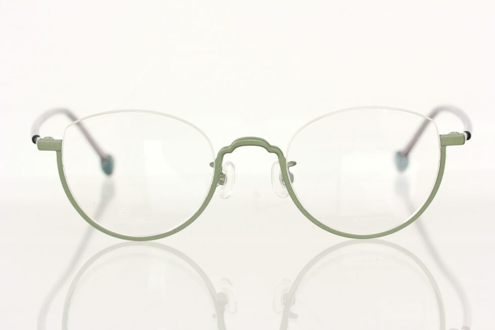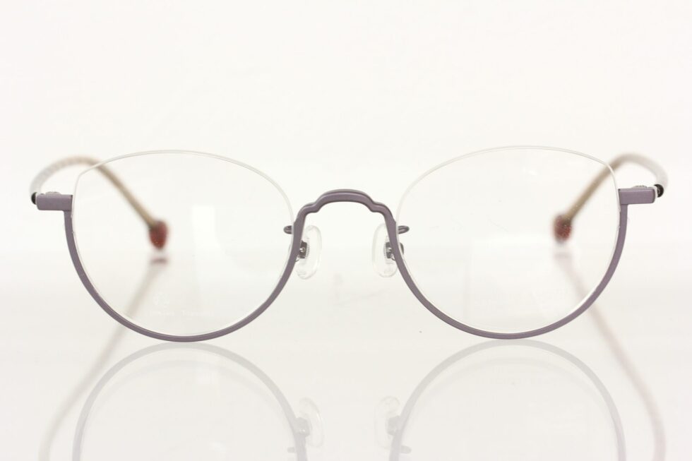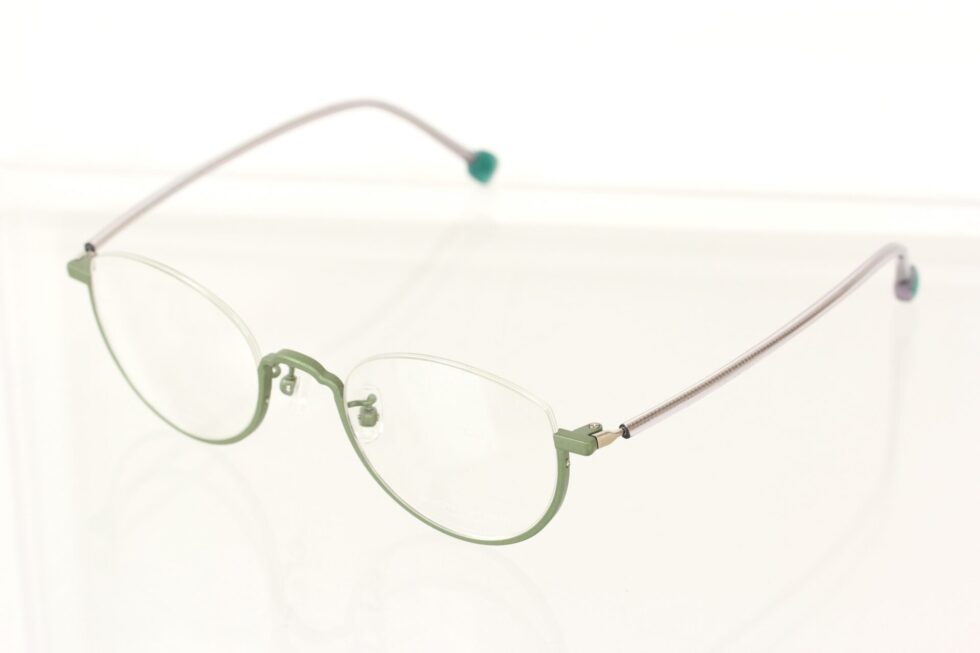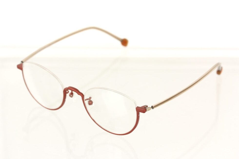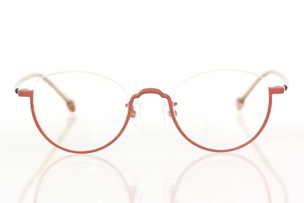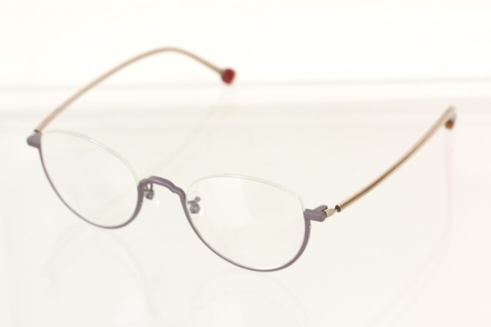 チタンシートから削り出したアウトラインは、ブリッジ部分のカットにキュートさを持たせ、レディースライクな印象に仕上がっています。