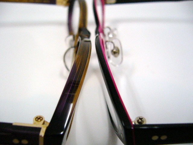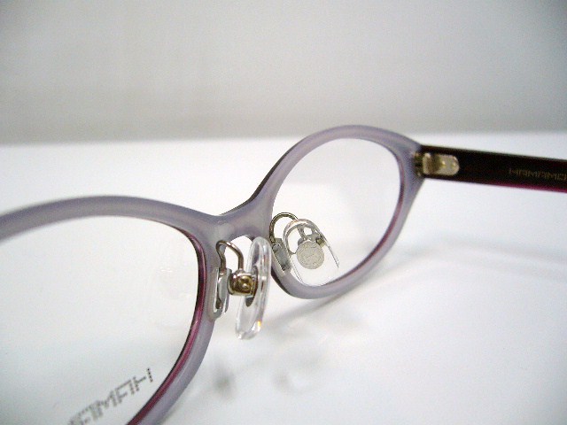 裏表 その他の商品 HAMAMOTO HT-506 ¥23,100 (税込) 投稿日| 2012.05.09 落ち着いた印象、使いやすそうなフォルムのこのモデル。 スタンダードに、長く愛用できる1本をお探しの方には特にお勧めです。 お勧めポイントは薄さ。 左が一般的なプラスチックフレームですので、比べていただければ、一目瞭然の薄さ、約半分 でも強度面は全く問題ありません。 薄いことによって柔らかな掛け心地でプラスチック特有のがちっとした感じが軽減されてます。 でもただの地味なメガネでは面白くないですし、amiとしてもお勧めしません。 ちゃんと遊び心ありますからね 裏生地はショッキングピンク。前面の黒から見えるチラ見せがまたセクシー&キュート 他3色ございます。 3色とも裏面はホワイト。 下2本画像ではほとんどおんなじカラーですが、パープルとなっております。 この掛け心地はお試しいただかなくてはわかりません