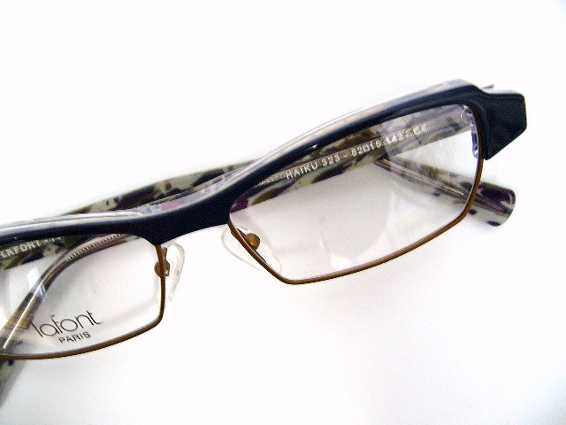 フロント上部のプラスチック部分は紺色、下のメタル部分はブラウンとなかなかな渋メガネとなっていますよ。