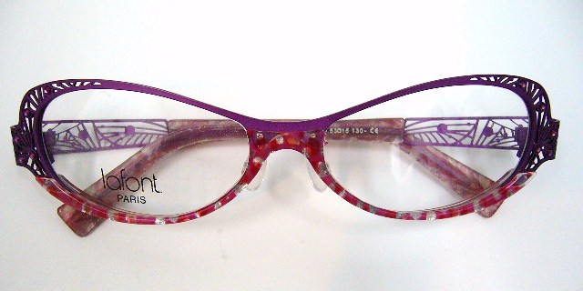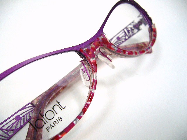 アクセサリーのように LAFONT GAUFRETTE ¥47,250 (税込) 投稿日| 2012.01.28 こんばんわ。 もう1月も終わりか~、特に今月は忙しくさせていただいたおかげで、早く感じる ではでは、いきます Lafont GAUFRETTE Col.758 なんか写真の撮り方はメガネの証明写真みたいになっちゃいましたが (言いたいこと伝わってるかな~?) 女性のキュンとくるツボをいくつも押しちゃうこのモデル。 お勧めしてても反応がとっても楽しいモデル Lafontの代名詞といってもよい、ラインストーン&透け感のあるフレーム。 ギラギラしてなくて、キラキラしてるお上品なエレガントさを感じます。 毎回Lafontはプラスチック生地の新色が登場。 このカラーも新作の1つ。ドットやラメ感、とにかくかわいい生地なんです 嬉しいことにメガネもアクセサリーの1つと考えていただく女性の方も増えて来ました。 このモデル、まさにアクセサリーのようなというか、アクセサリーとしてのメガネですよね。
