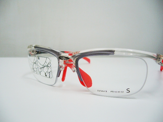 クリアのフレームカラーとイヤーソック、ノーズパット、アイコンパーツの赤、そしてミラーの赤の組み合わせがかなりかっこいい仕上がりになります。