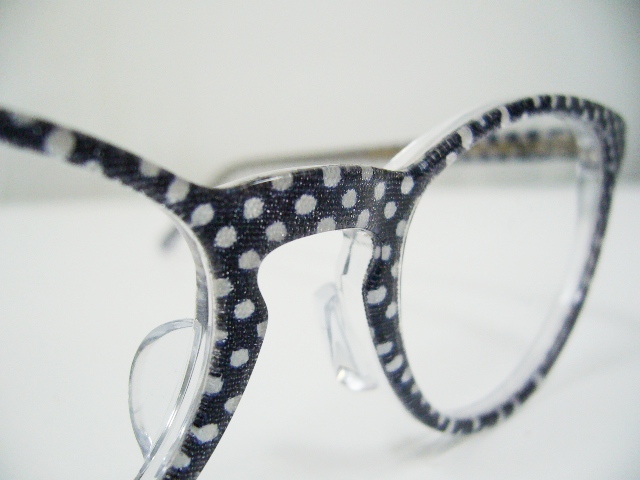 今回のLafpntの生地の特徴、実際の布を張り合わせたシリーズ。ドットの生地がとってもかわいいです。