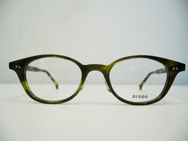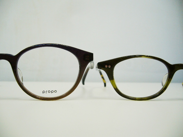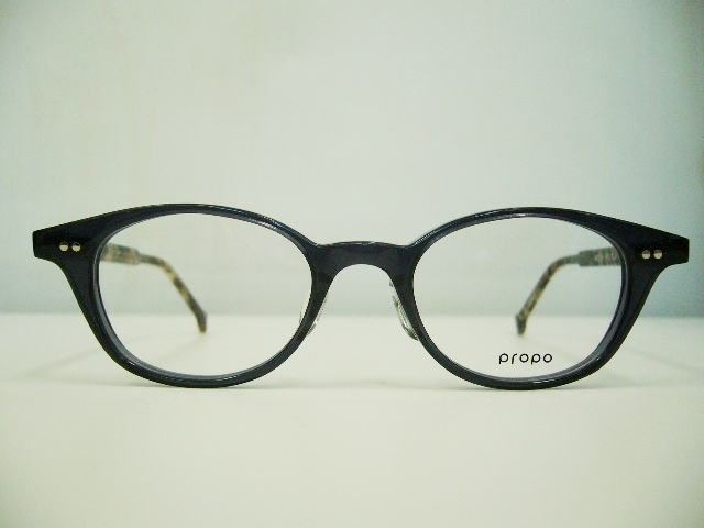 小さめのメガネは一歩間違えるとひょうきんな印象にもなりかねないのですが、ここはさすがpropoと言ったところ。鋲のアクセントといい絶妙なフレームラインでキリッと知的な印象にすら見えます。