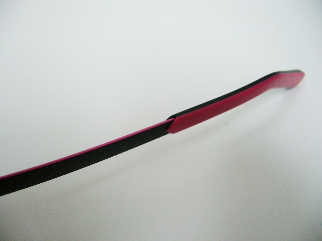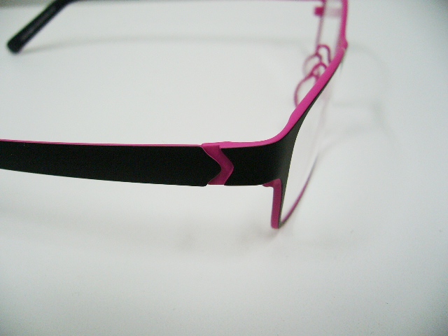 Col.6021 ブラック×ピンク 秋の東京新作展示会で入荷したこのモデル、マット調のカラーで見た目も質感もゴムのような感じ。触ってみるとこころなし柔らかくも感じる不思議なメガネです。