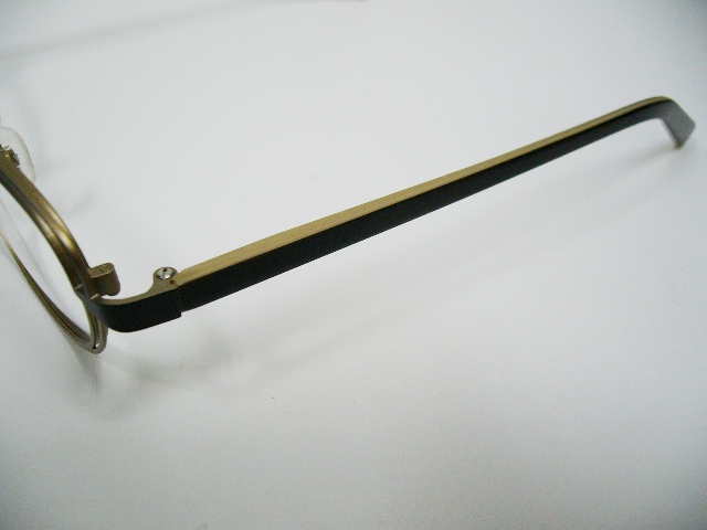 Col.181 ブラック×ゴールド マットカラーなので落ち着いた印象です。一筆書きで描いたようなラインで構成されたメガネ。