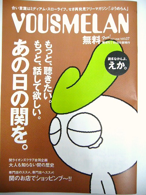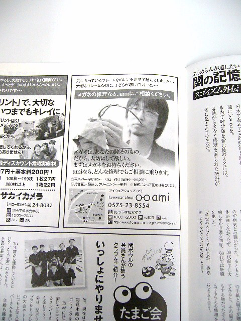 ぶうめらん VOL.07 掲載メディア 投稿日| 2008.10.06 最終更新日| 2025.10.09 こんばんわ。朝晩の冷え込みがだいぶきつくなってきましたね~。 最新号が届きましたよ~。 関を愛する人たちが愛情込めて一所懸命作っている「ぶうめらん」 今回も読みごたえ満点、おなかいっぱいの内容です。 そしてもちろんamiの広告も。 入り口入って、右手に鎮座しております。もちろんフリーですので、お気軽にお持ちください。 「読まなかんよ、えか」