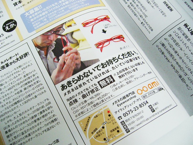 ぶうめらんVOl34 掲載メディア 投稿日| 2013.04.17 最終更新日| 2025.10.09 だいぶ花粉症、楽になってきました。そろそろ薬飲まなくても大丈夫です。 ぶうめらん最新号ができました。 今回も広告載せていただいております。 ちょこっと顔出ししてます。 今回は2回目の修理具合直しの記事。前回の時もすごくたくさんの反響をいただきましたが、今回もすでに何件かお問い合わせいただいております。 電話でのお問い合わせも可能ですが、出来れば実物を見ながらの方がより詳しくご案内できると思います。 ご相談だけでもお気軽にご来店ください。