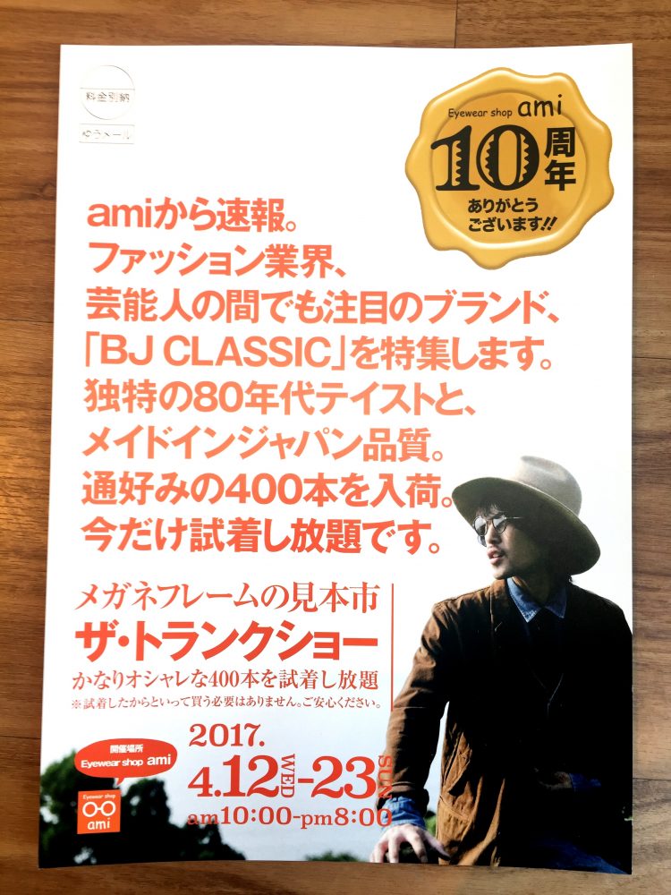 先日ご報告した「Eyewear shop ami 10周年」を記念し開催するトランクショーのDMが出来上がりました(*^^)v