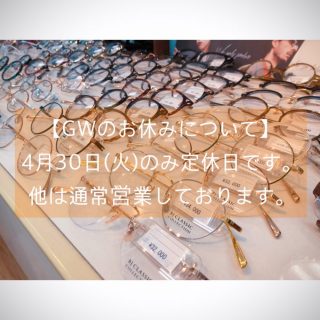 GW期間中の営業について。 お知らせ 投稿日| 2019.04.25 最終更新日| いつもEyewear shop amiをご利用いただき、誠にありがとうございます。 GW期間中の営業日案内です。 4月30日(火)の定休日以外通常営業です!! 朝は10時から夜8時まで。 ご来店お待ちしております。 スタッフ(ロωロ)ゞ