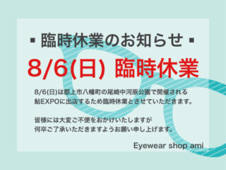 8/6(日)は郡上市八幡町の尾崎中河原公園で開催される鮎EXPOに出店するため、臨時休業とさせていただきます。