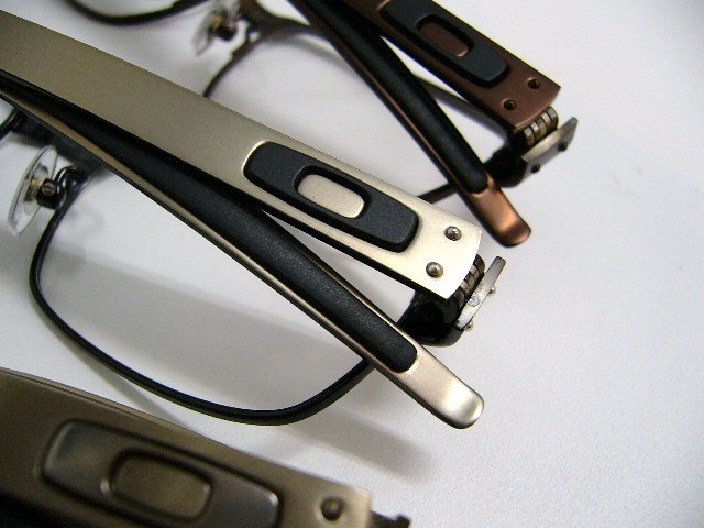 テンプルにはおなじみOAKLEYのアイコン。そして、スタッズも見方によればレトロフレームのカシメにも見えなくもない感じですね。