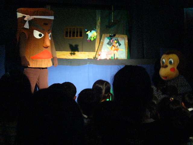 今日は上の娘が通う下有知保育園での人形劇「さるとかに」を観劇してきました