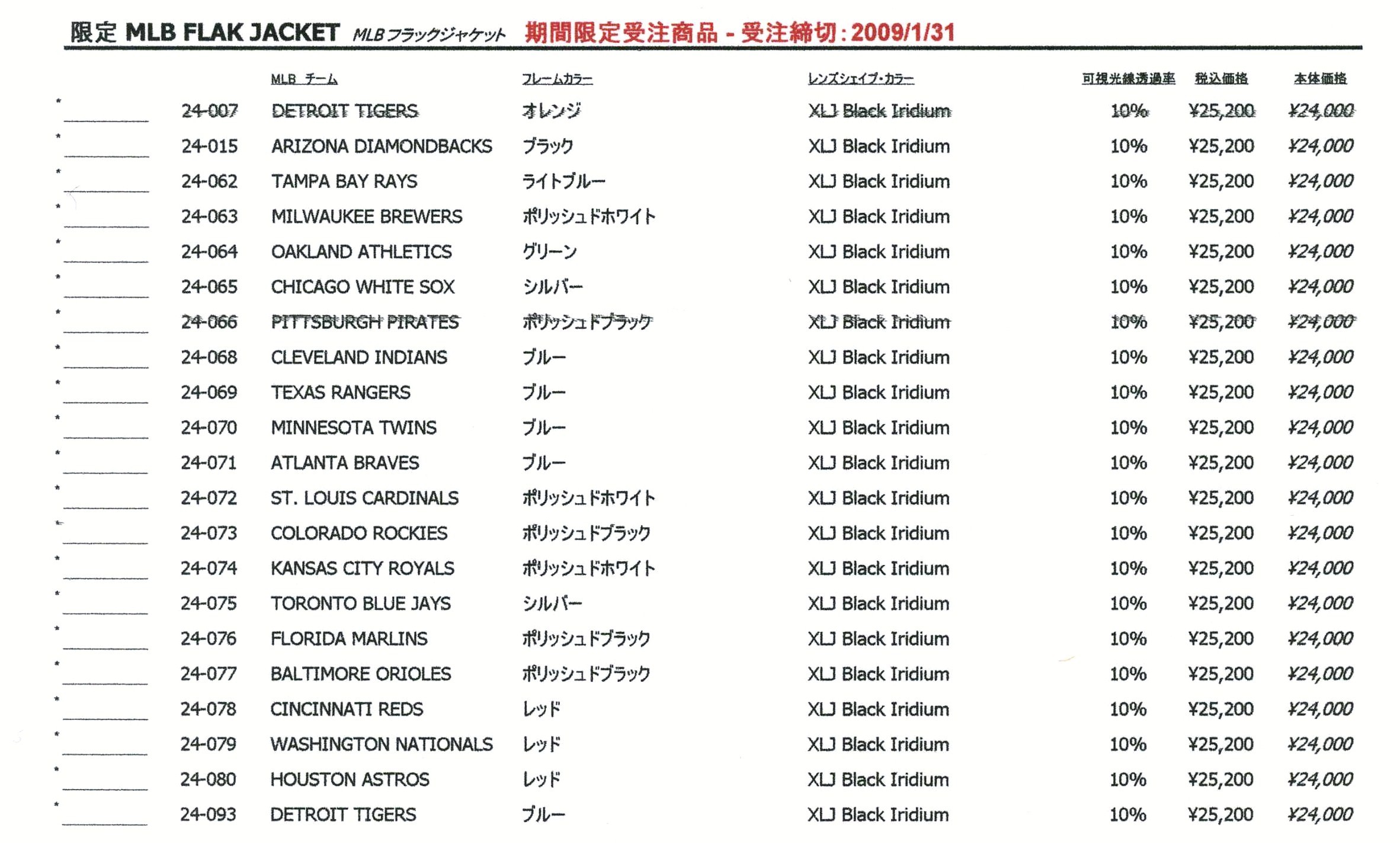 アメリカのOAKLEYHPには以前から掲載されており、お問い合わせも数件あったMLB FLAK JACKETが日本でも遂に発売されます。