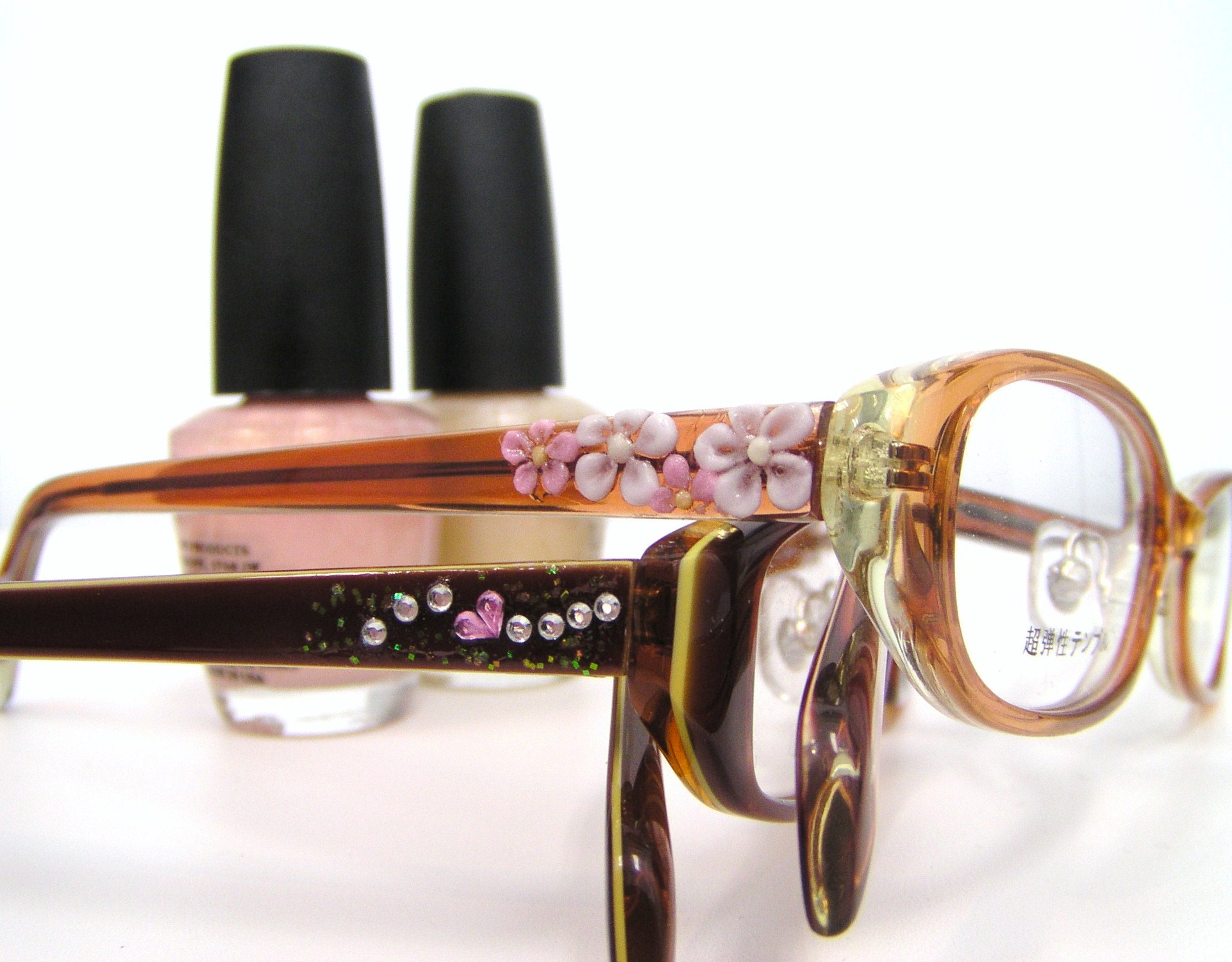 今回もかわいさ満点の仕上がりです。フレームはどちらもオレンジ、ブラウン系で顔なじみの良いフレームカラーです。