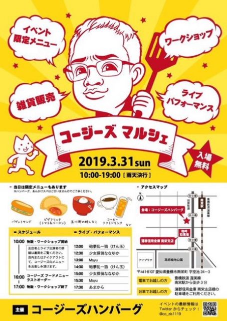 明日、3月31日(日)は愛知県豊橋市にあるコージーズハンバーグさん主催の『コージーズマルシェ』にスタッフ、参加してきます。(店舗情報はコチラから→★)
